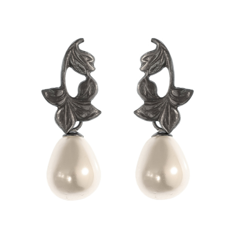 Ohrhänger von AMALA, aus der geheimnisvollen, verzaubernden Schmucklinie Noir, die mit kunstvoll gearbeiteten Schmuckstücken aus dunklem Sterlingsilber den Mondschein einer Sommernacht feiert. Edle Perlen verleihen der festlichen Stimmung Schönheit und Glanz. Die Ohrhänger sind romantisch, verspielt und weisen doch eine klare, dem Zeitgeist entsprechende, Formensprache auf.