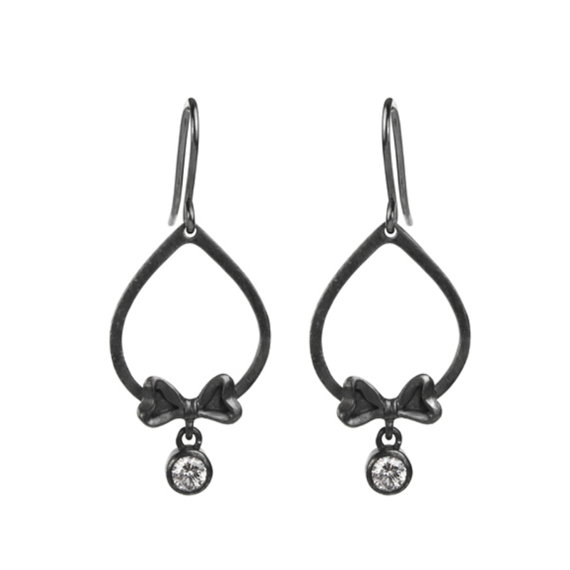 Ohrhänger von AMALA, aus der geheimnisvollen, verzaubernden Schmucklinie Noir, die mit kunstvoll gearbeiteten Schmuckstücken aus dunklem Sterlingsilber den Mondschein einer Sommernacht feiert. Edle Zirkonia-Schmucksteine verleihen der festlichen Stimmung Schönheit und Glanz. Die Ohrhänger sind romantisch, verspielt und weisen doch eine klare, dem Zeitgeist entsprechende, Formensprache auf.
