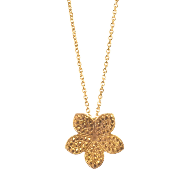 Wie eine Jasminblüte in voller Pracht zeigt das Collier Jasmin seine ruhige, ausdrucksvolle Schönheit. Die kräftigen, goldglänzenden Blütenelemente sind inspiriert von der natürlichen Form der Jasminblüte – ein Sinnbild für Anmut, Reinheit und stille Stärke.