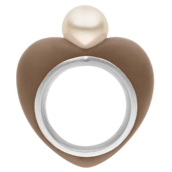 The Young Design ClassicDer Herzring AMALA aus der Kollektion Heart Up vereint klassisches Design mit modernen, unkonventionellen Materialien und zeitloser Eleganz. In feinster Handwerkskunst in Deutschland gefertigt, besteht er aus hochwertigem 935er Silber und wird von einer zarten, schimmernden Süßwasserperle gekrönt.