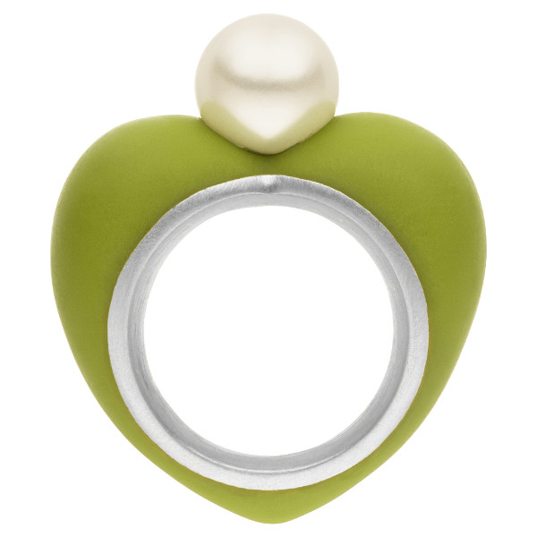 The Young Design ClassicDer Herzring AMALA aus der Kollektion Heart Up vereint klassisches Design mit modernen, unkonventionellen Materialien und zeitloser Eleganz. In feinster Handwerkskunst in Deutschland gefertigt, besteht er aus hochwertigem 935er Silber und wird von einer zarten, schimmernden Süßwasserperle gekrönt.