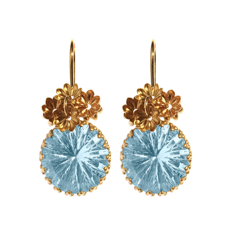 Tauche ein in die sanfte Schönheit der Blüten-Ohrringe von Doll Up Sister. Die feinen Blütenelemente, kunstvoll mit einer echten 750er-Gelbgoldauflage veredelt, strahlen in feiner Eleganz. Im Mittelpunkt jedes Ohrrings leuchtet ein farbiger Glasstein – liebevoll gefertigt in einer kleinen deutschen Glasmanufaktur, die als Familienbetrieb seit Generationen traditionelles Kunsthandwerk bewahrt. Die Steine entstehen auf historischen Pressformen und tragen die kunstvolle böhmische Tradition in sich.