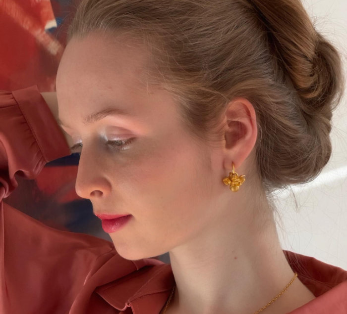 Die meisterhafte Handwerkskunst zeigt sich in jedem Detail: von der feinen Struktur der Blütenblätter bis zur sanften Linienführung, die eine harmonische Form entstehen lässt. Diese Ohrringe vereinen zeitlose Eleganz mit einem Hauch von Romantik und unterstreichen auf stilvolle Weise die individuelle Persönlichkeit ihrer Trägerin.